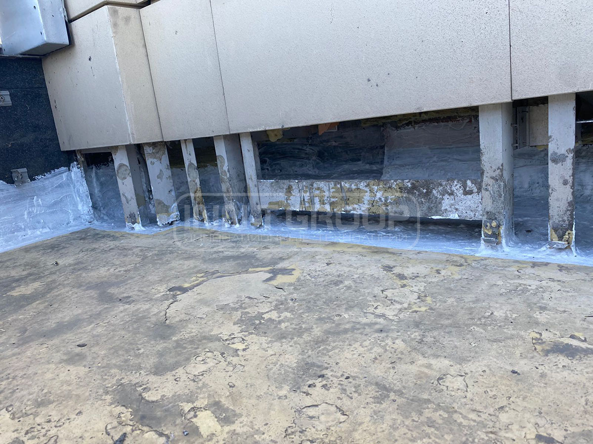 Решение: На поверхности стен и балконных плит было нанесено гидроизоляционное полимерное покрытие R-COMPOSIT в 2 рабочих слоя. Перед нанесением поверхность была загрунтована в один слой покрытием R-COMPOSIT разбавленным водой согласно инструкции.
